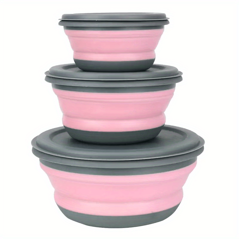 1.This set contains three collapsible storage bowls, all equipped with lids, which are excellent for food preparation and storage.