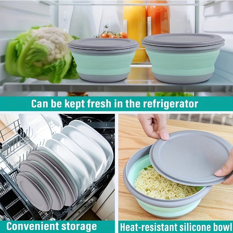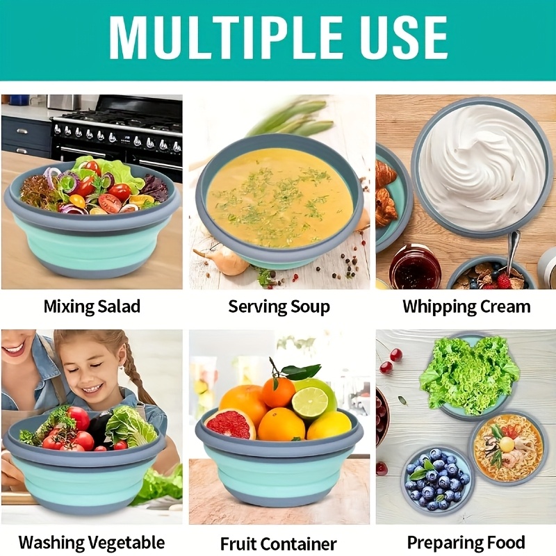 1. Collapsible Design: These silicone bowls easily fold down to a compact size, saving space and making them perfect for travel, camping, and picnics.