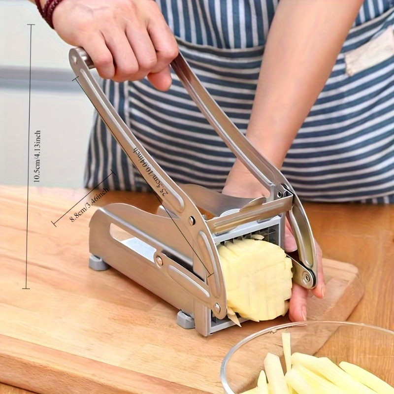 Featuring suction feet for added stability, this cutter stays firmly in place while you work, ensuring safety and efficiency during use. The sleek metallic finish not only gives the gadget a modern and professional appearance but also makes it easy to clean after use. Whether you're preparing ingredients for a salad, fries, or garnishes, the FARIDABIO Fruit Cutting Machine simplifies food prep and helps you achieve uniform, professional-quality cuts every time.