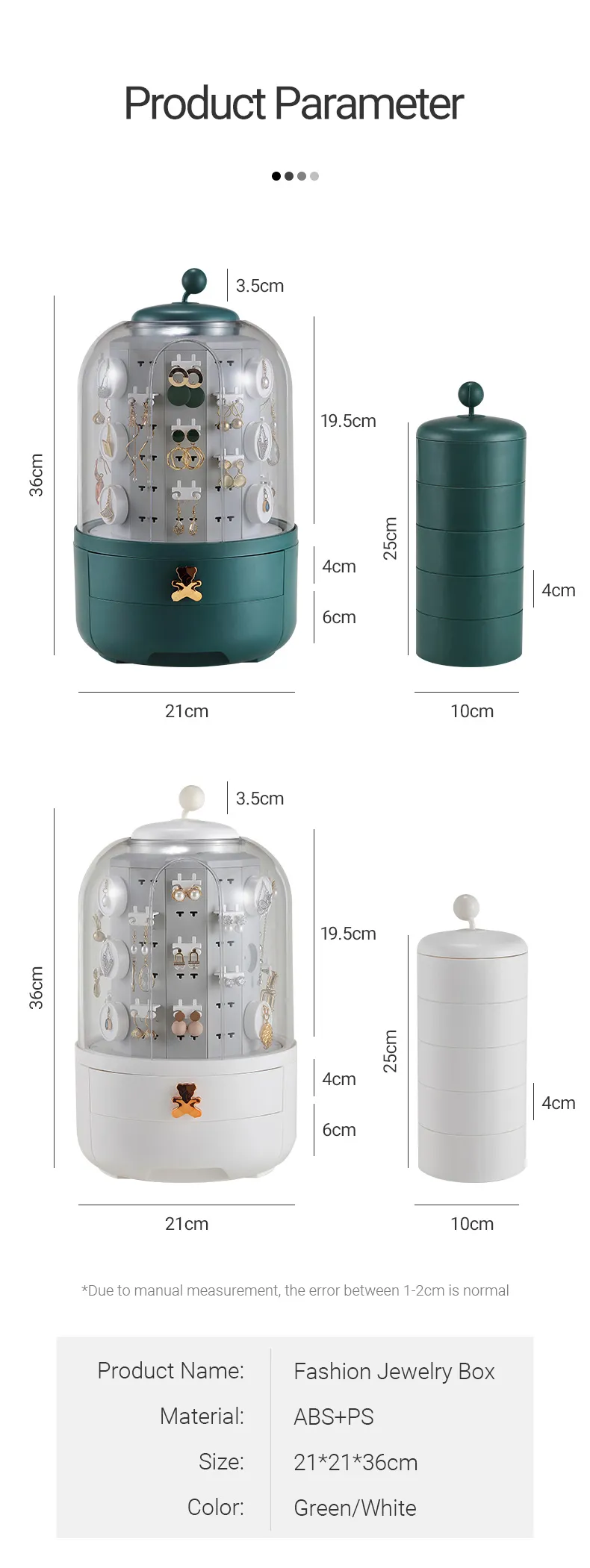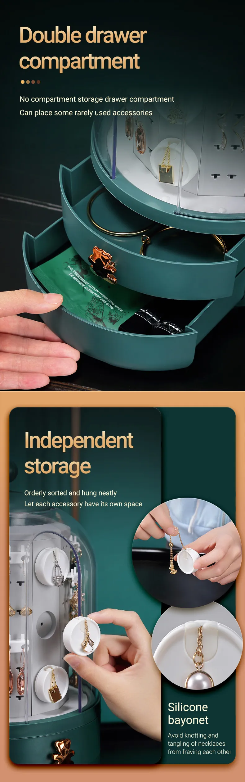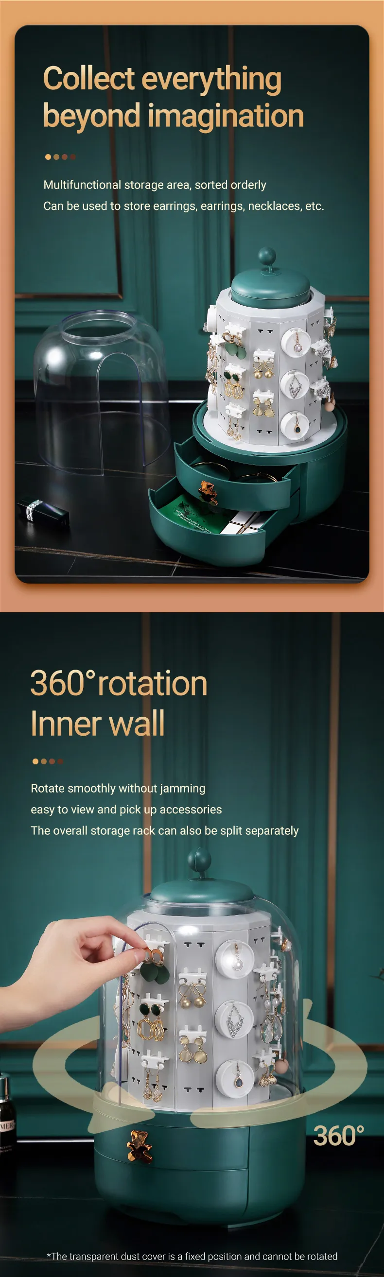 Efficient Organization: The 360-degree rotation and spacious compartments ensure that your jewelry is