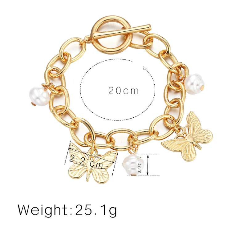 Fashion Butterfly Pearl Pendant Chain Bracelet