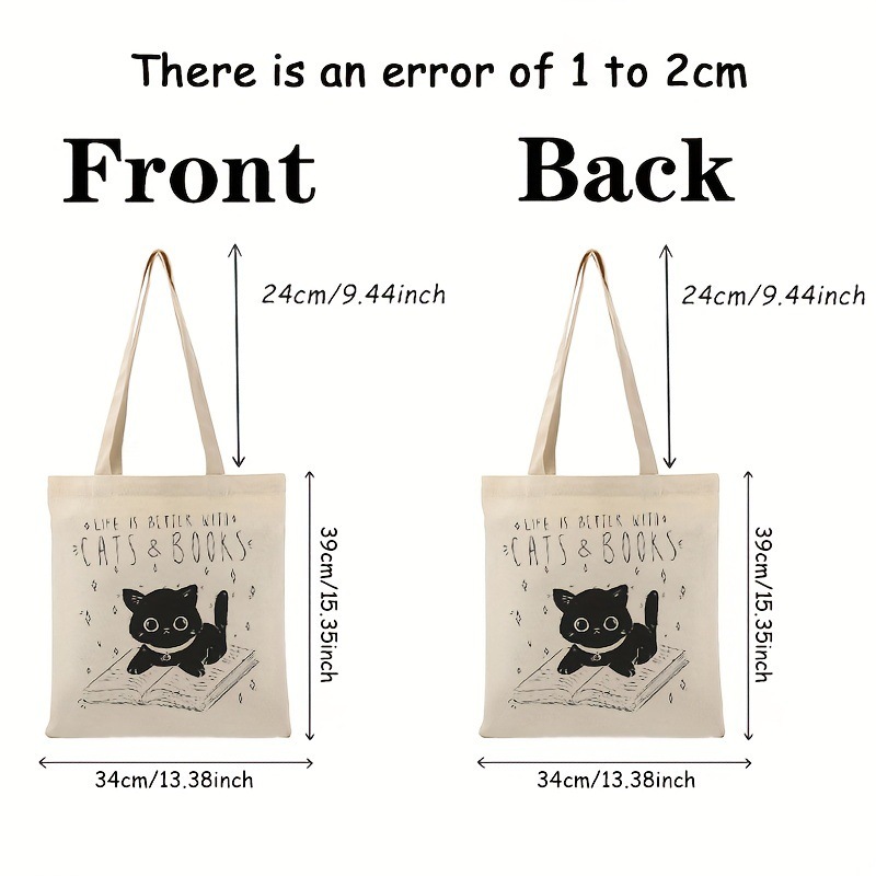 The whimsical cat and book graphic design adds a touch of fun and creativity to this bag, making it an instant conversation starter and a stylish statement piece.