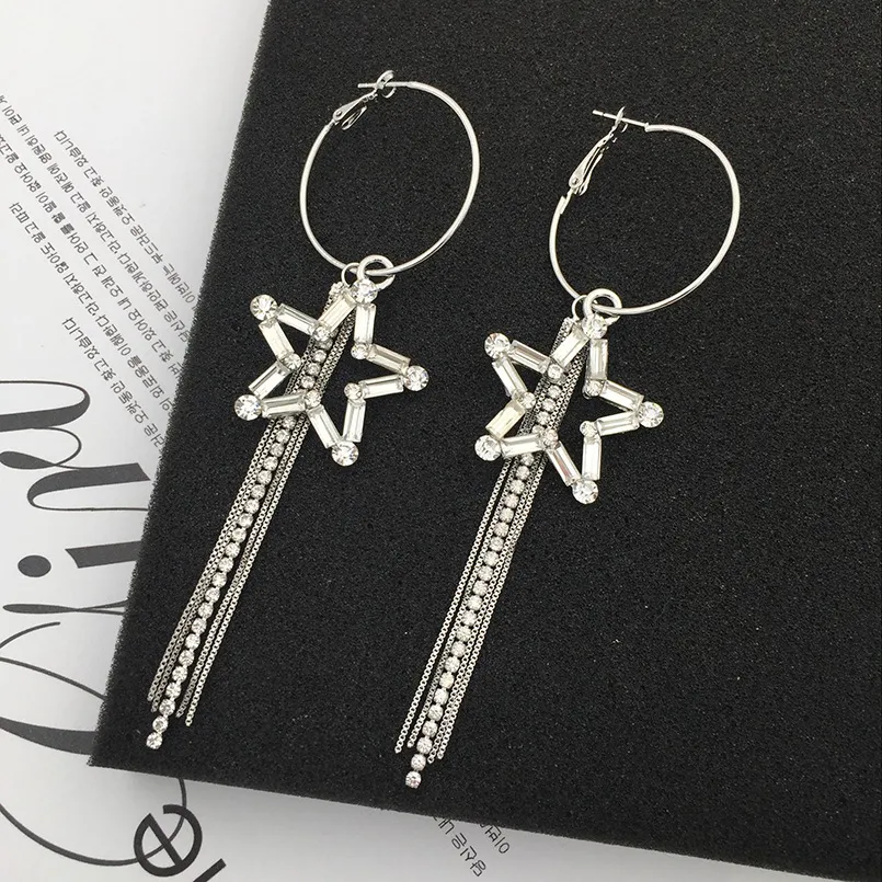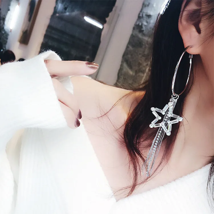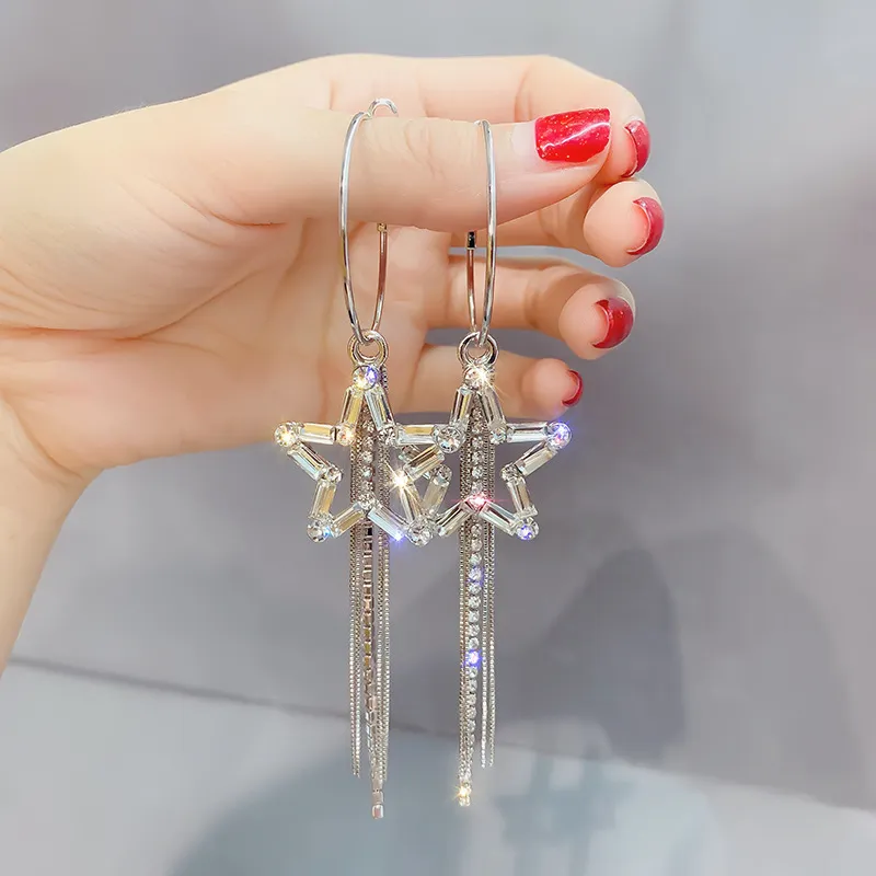 Fashion Five-pointed Star Tassel Personalized Star Rhinestone Earrings