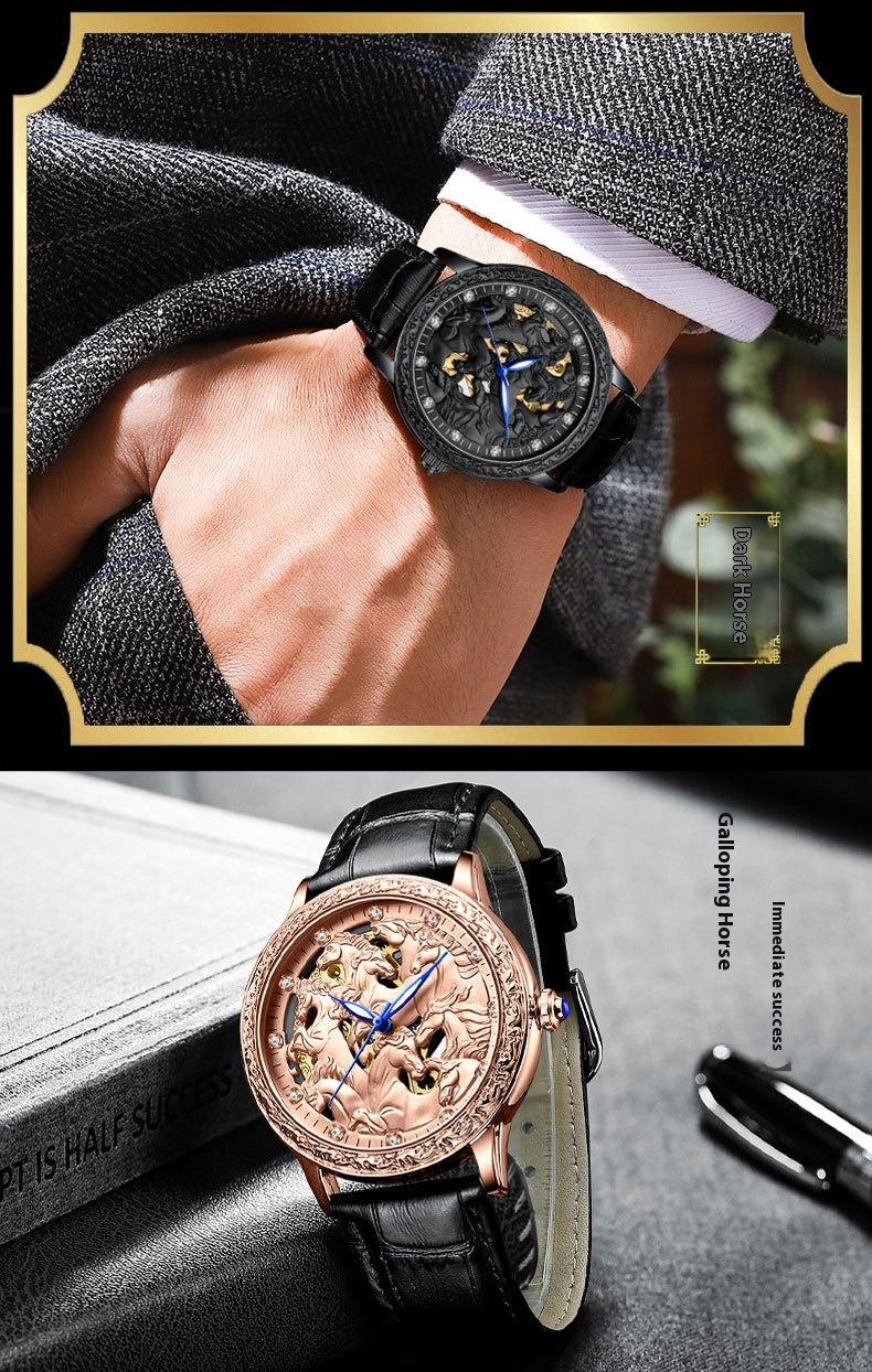 This watch is the epitome of sophistication and practicality, combining stunning aesthetics with exceptional functionality. Its hollowed-out design sets it apart from standard timepieces, while its waterproof and automatic features make it a versatile companion for every aspect of life.