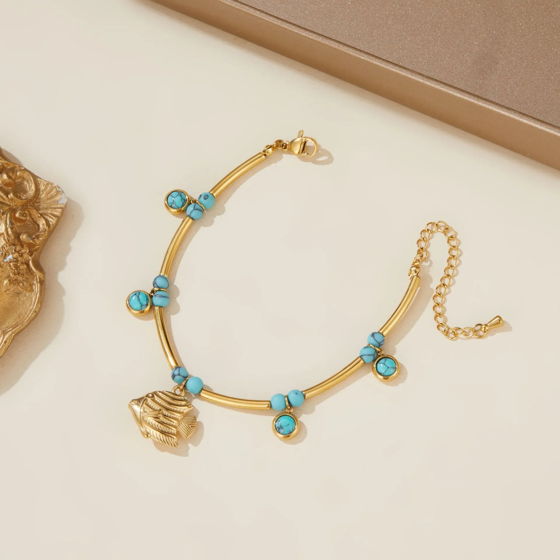 The turquoise stones give this bracelet a vibrant, tropical aesthetic, perfect for those who love to embrace the oceanic theme.