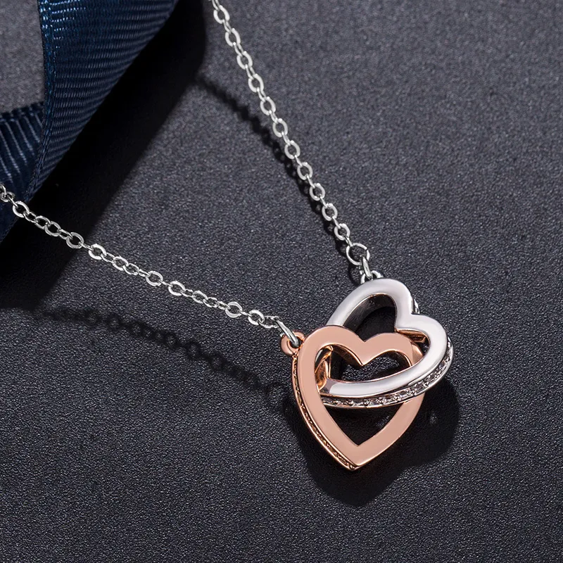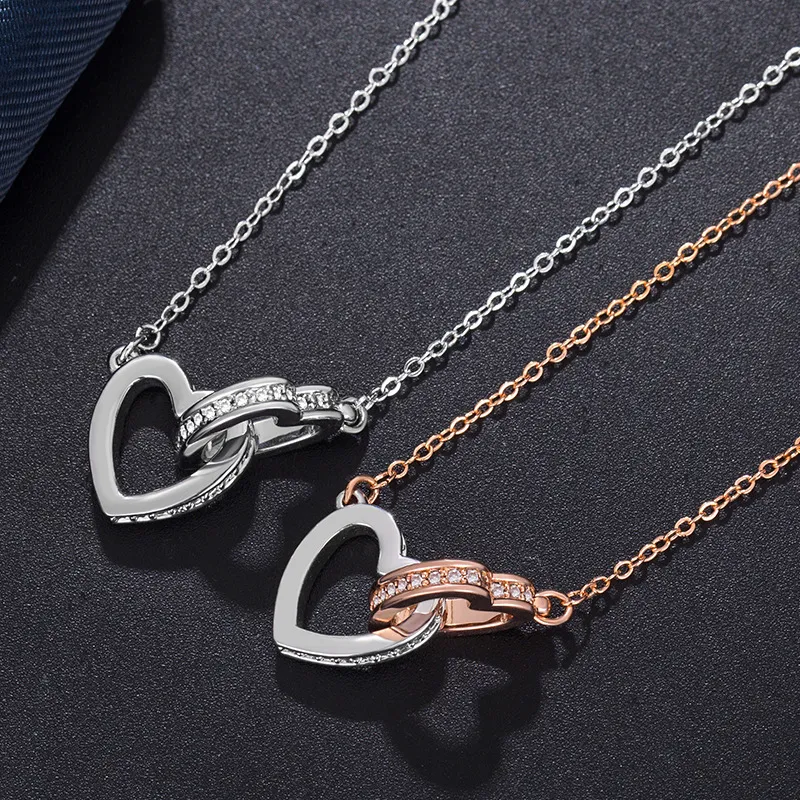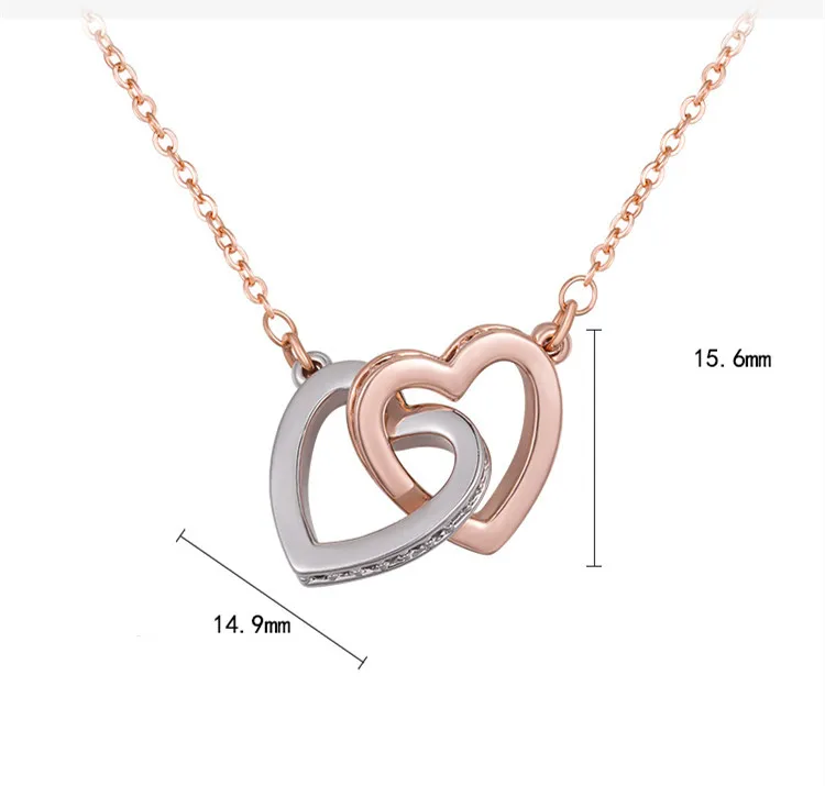 Fashion Platinum Pendant Double Heart Necklace