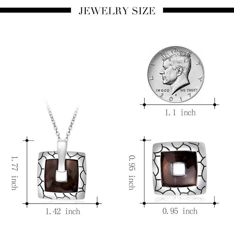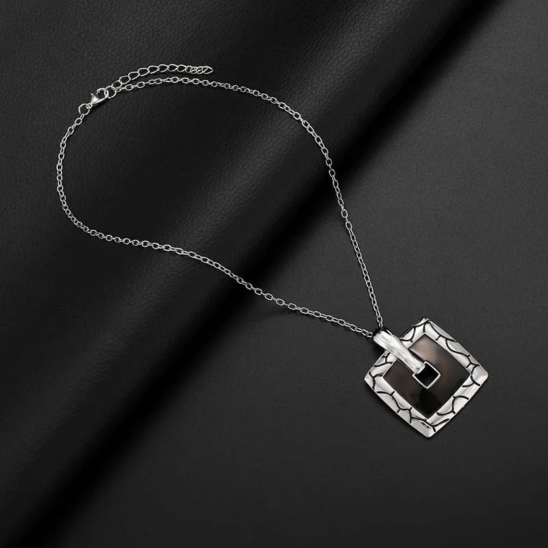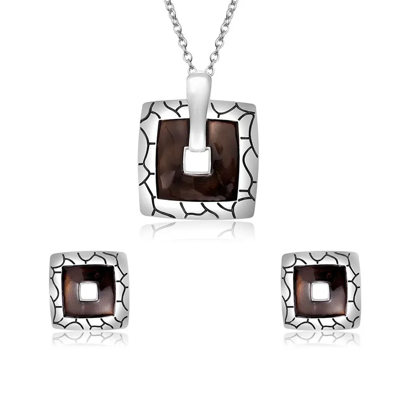 Fashion Retro Square Pendant Necklace Earrings