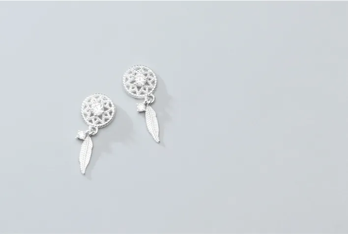 Fashion Small Diamond Mesh Temperament Feather Earrings