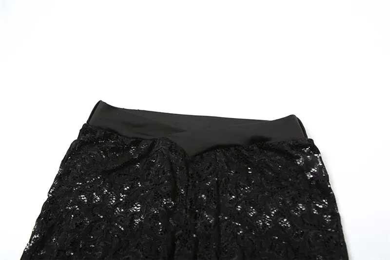 Fashion Solid Color Lace See-through Hollow Out Stitching Slim Fit Sexy