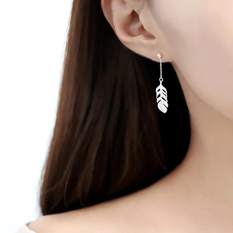 Fashion Sweet Feather Tassel Long Earrings – Elegant and Playful Design