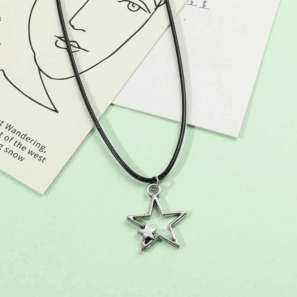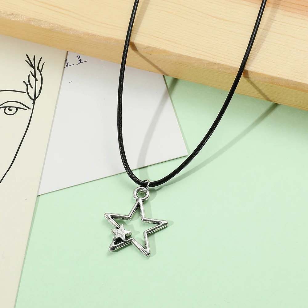 Fashion Vintage Simple Star Pendant Necklace for Women Men Punk Hollow Star Neck Chain Trendy Y2k Jewelry Accessories