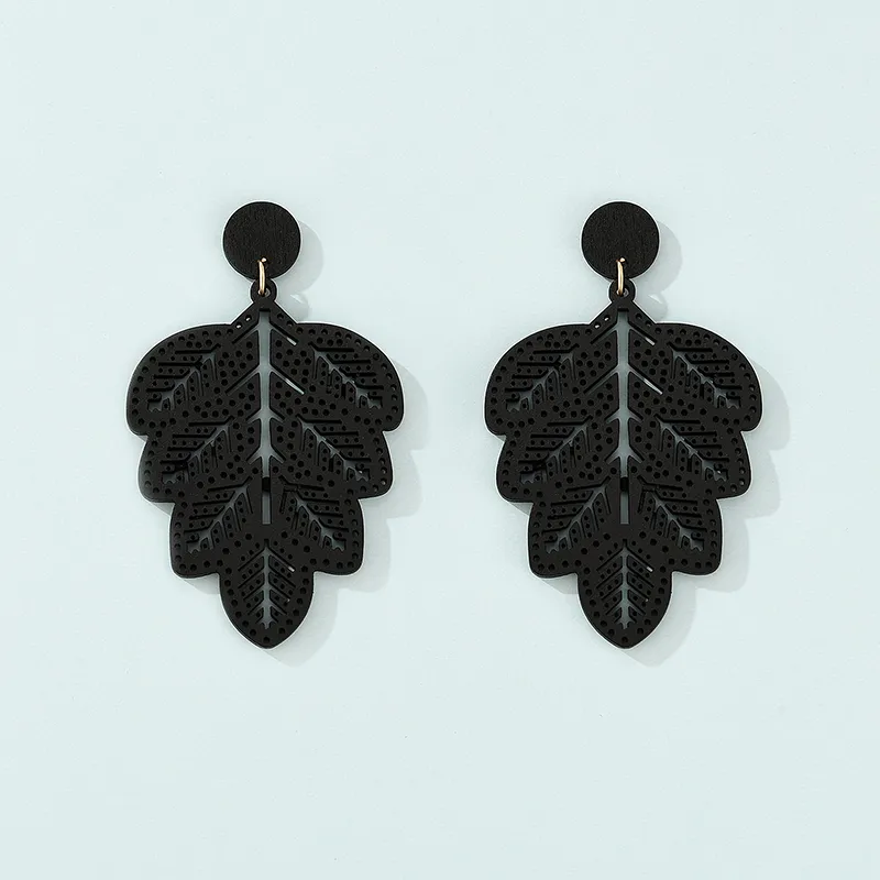 Fashionable Black Leaf Shape Pendant Earrings