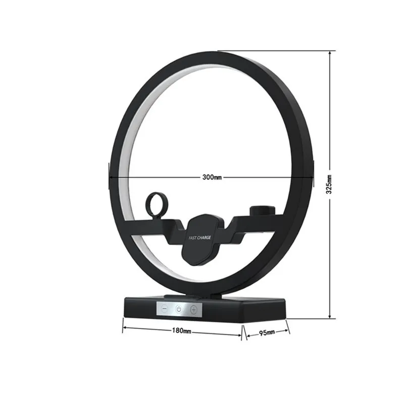 This innovative lamp integrates four essential features: a bedside light, a wireless fast charger, a phone holder bracket, and an additional