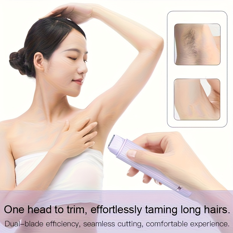 The FEIYBA Women’s Trimmer features a dual-head shaving system, combining a precision head for facial and detail work with a larger trimming head for body grooming. The blade system glides gently across the skin, preventing pulling, redness, or discomfort—ideal for sensitive areas like the bikini line and face.