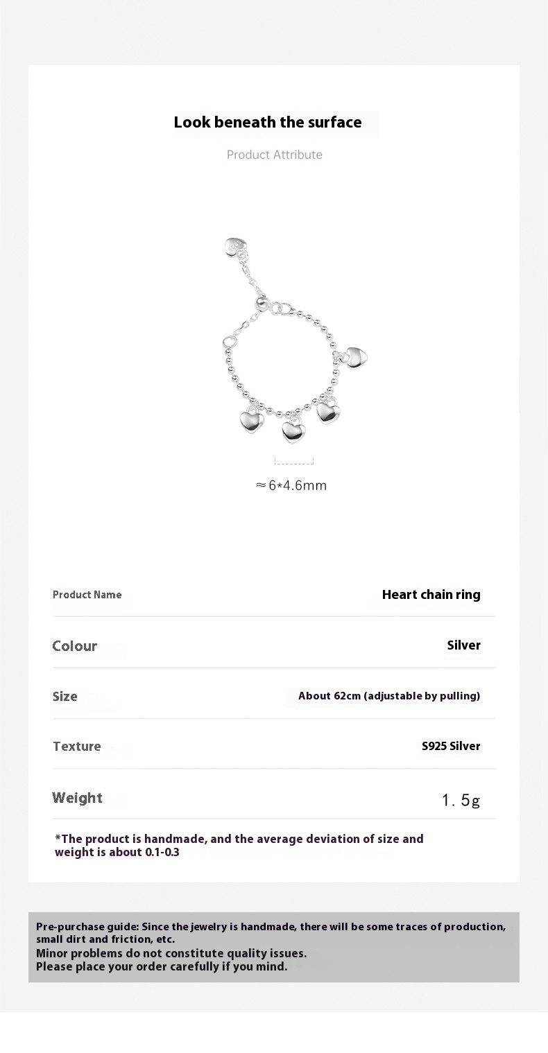 Why Choose the Female Minimalist S925 Pure Silver Heart-Shaped Chain Ring?