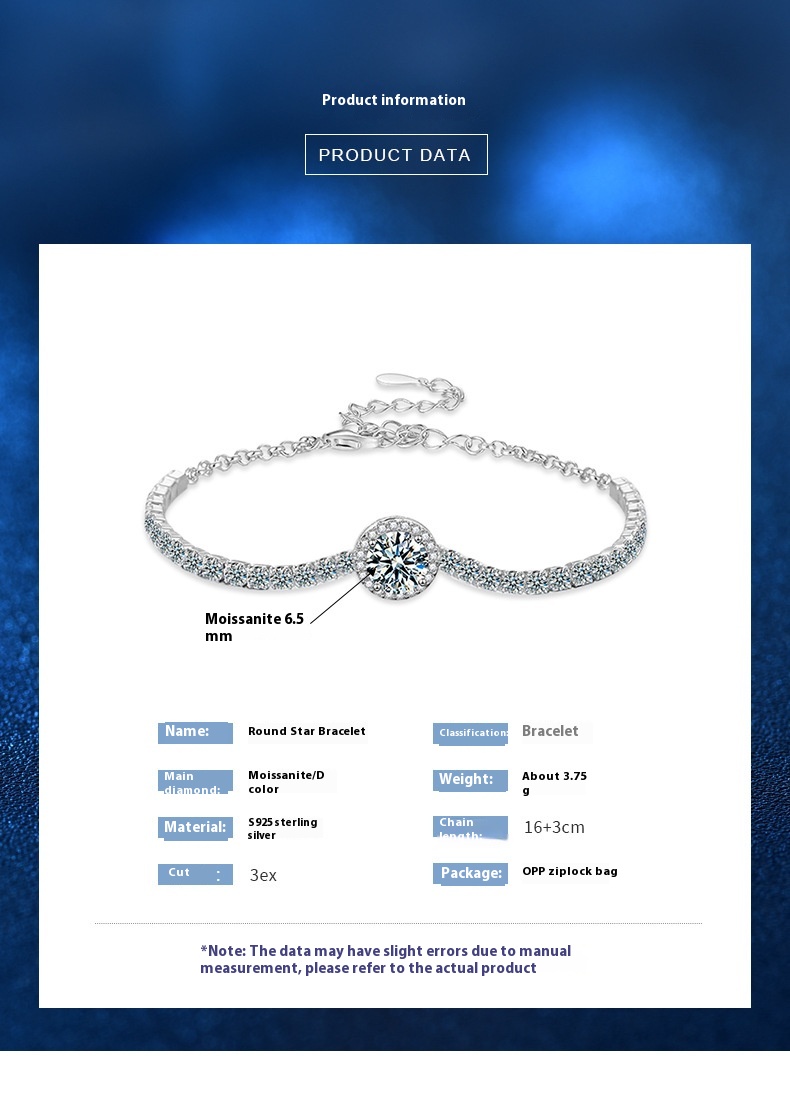 Key Features of the Female Starry Moissanite 925 Silver Bracelet