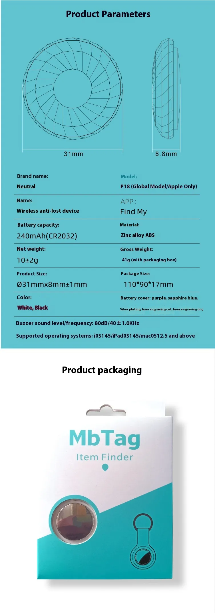 The FindMy Search Global Locator Mobile Wallet Pet Positioning Alarm Airtag Bluetooth Tracker is equipped with state-of-the-art Bluetooth technology and can be easily attached to a wide range of items including wallets, keys, bags, and pet collars. With the ability to use the Find My network, this device is not limited to Bluetooth range; it can also help locate your item even if it is far from your device, thanks to Apple's vast network of devices.