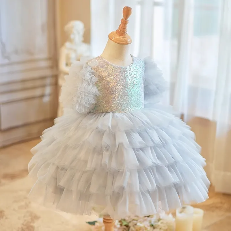 The dress typically features delicate detailing such as layered skirts, soft textures, and decorative elements that create a standout look without being overwhelming. Its lightweight construction allows easy movement, which is important for active toddlers who are learning to walk, crawl, or explore their surroundings.