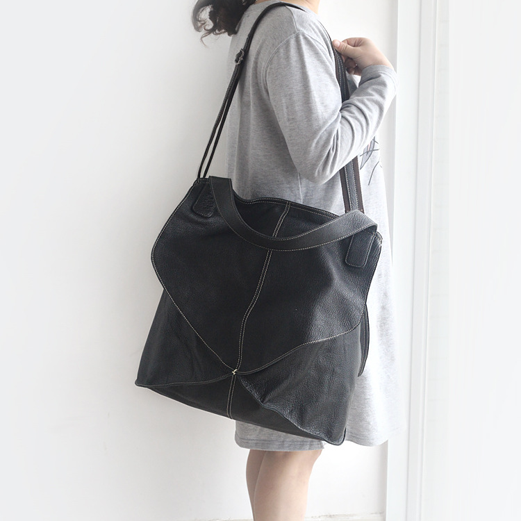 Key Features of the First Layer Cowhide Stitching Bag Hand-held Shoulder: