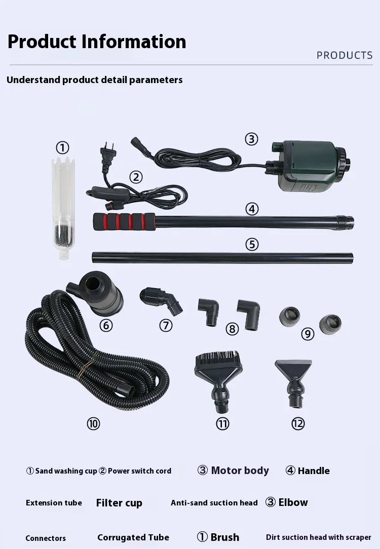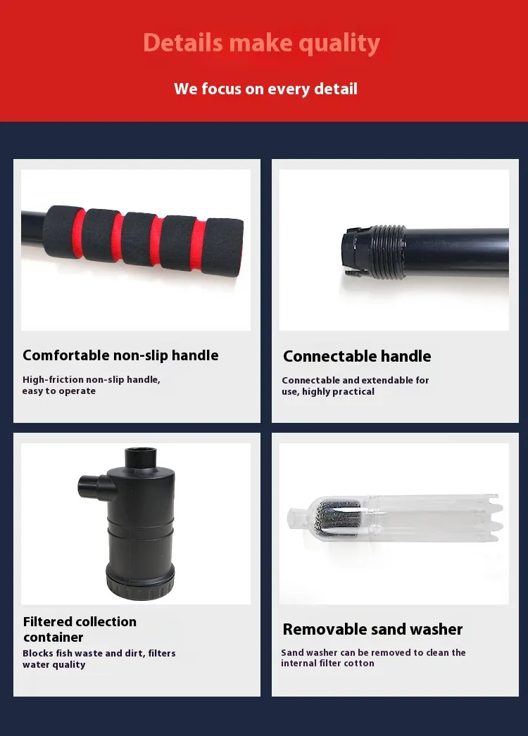 Equipped with a high-performance electric pump, it rapidly removes dirty water while safely retaining fish and plants, making routine cleaning hassle-free. The suction system ensures a smooth water exchange, maintaining water quality and reducing stress on your aquatic pets.
