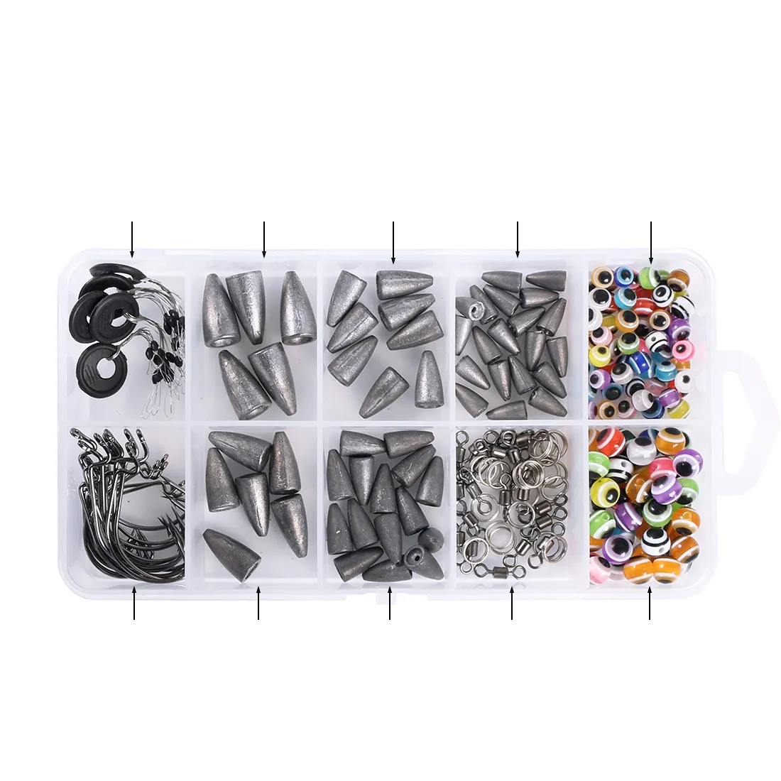 The fishing sinkers feature a streamlined design that reduces drag in the water, allowing for smooth and accurate casts. They are available in various types, including split shot, egg, and pyramid shapes, each designed to meet specific fishing needs. With a durable and rust-resistant finish, these sinkers are built to withstand exposure to saltwater and harsh weather conditions, ensuring that you get reliable performance every time.