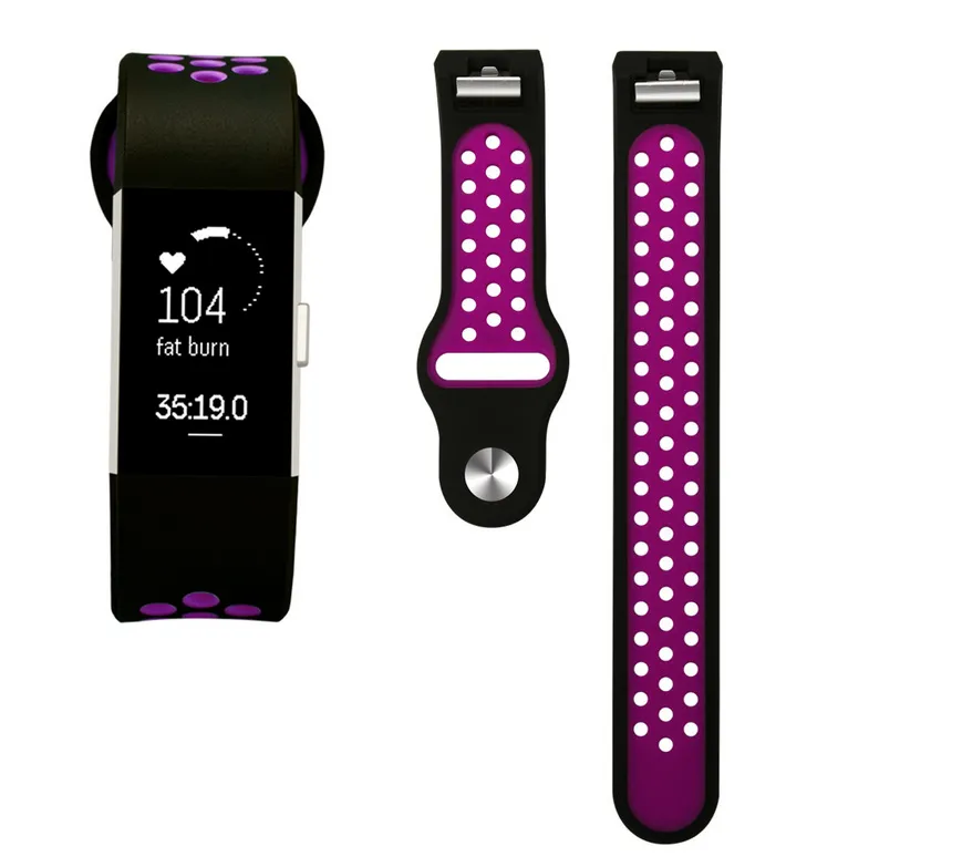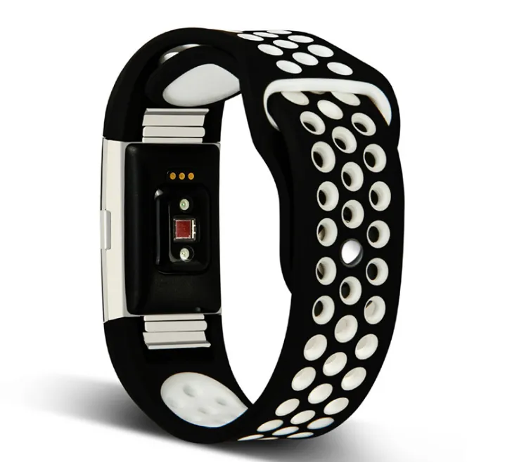Fitbit Charge 2 Monochrome Round Hole Silicone Strap – Stylish & Breathable