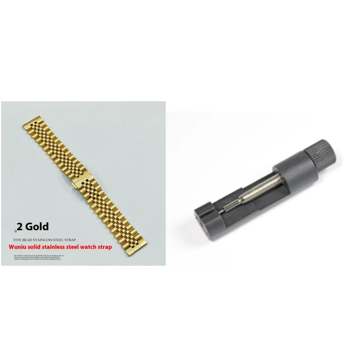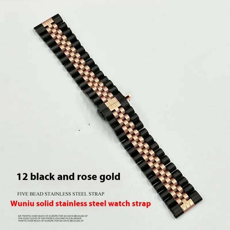 The Five-Bead Cow Ring Solid Stainless Steel Strap is the perfect choice for individuals who want a reliable, stylish, and unique strap for their watch. The five-bead cow ring design offers a distinctive look that sets your watch apart from the rest, while the solid stainless steel construction ensures it’s both durable and long-lasting. Whether you're looking for a strap for everyday wear or for special occasions, this strap offers the perfect balance of elegance and functionality.