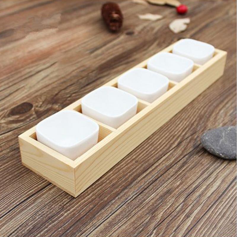 Five Grid Flower Pot Wooden Tray Succulent Flower Pot