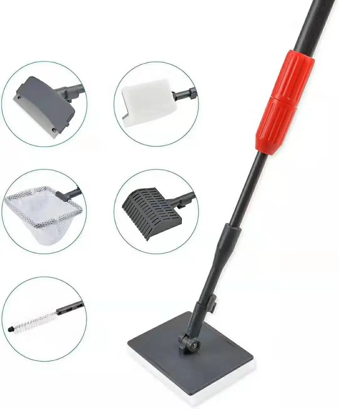 This multifunctional cleaning tool kit is specially designed for glass aquariums and has an extra-long handle to help keep your aquatic