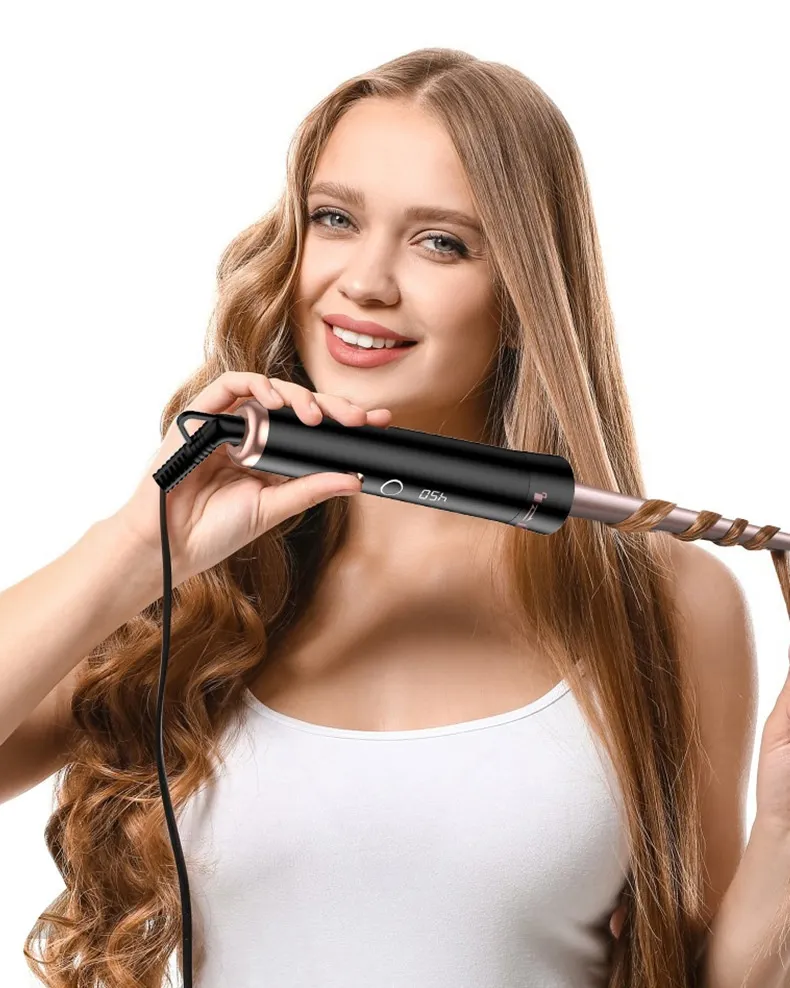 Equipped with negative ion technology, this curler reduces frizz, seals moisture, and protects your hair’s natural shine during styling. The gentle heat distribution ensures even temperature control, preventing hot spots that cause damage.