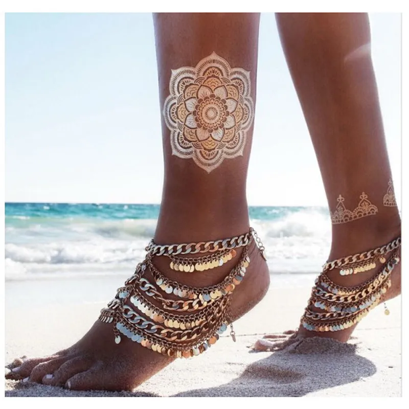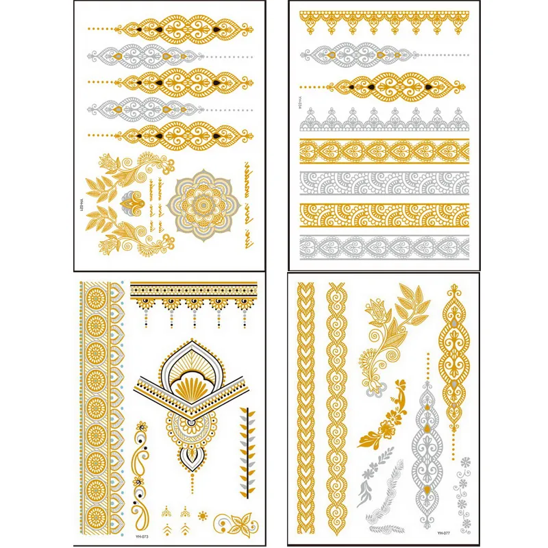 Flash gold tattoos are a stylish and temporary way to adorn your skin with metallic designs that mimic the appearance of jewelry. These tattoos are popular for their shimmering effect, making them ideal for festivals, beach outings, parties, or any occasion where you want to add a touch of glamour without the commitment of permanent ink.