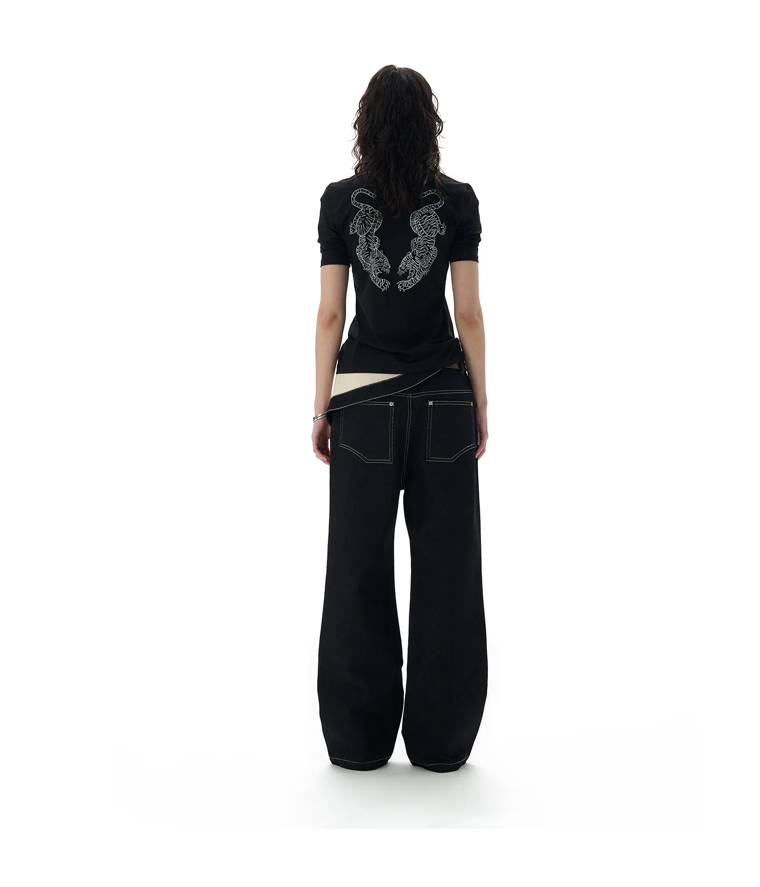 Crafted from high-quality breathable cotton, these pants offer unmatched comfort while giving you the freedom to move effortlessly throughout your day. The defining feature is the flip-over waistband design, adding a layered aesthetic and a modern twist to a traditional silhouette. The bold, monochrome prints around the waist inject a rebellious vibe, ideal for pairing with crop tops, tucked-in tees, or oversized jackets.