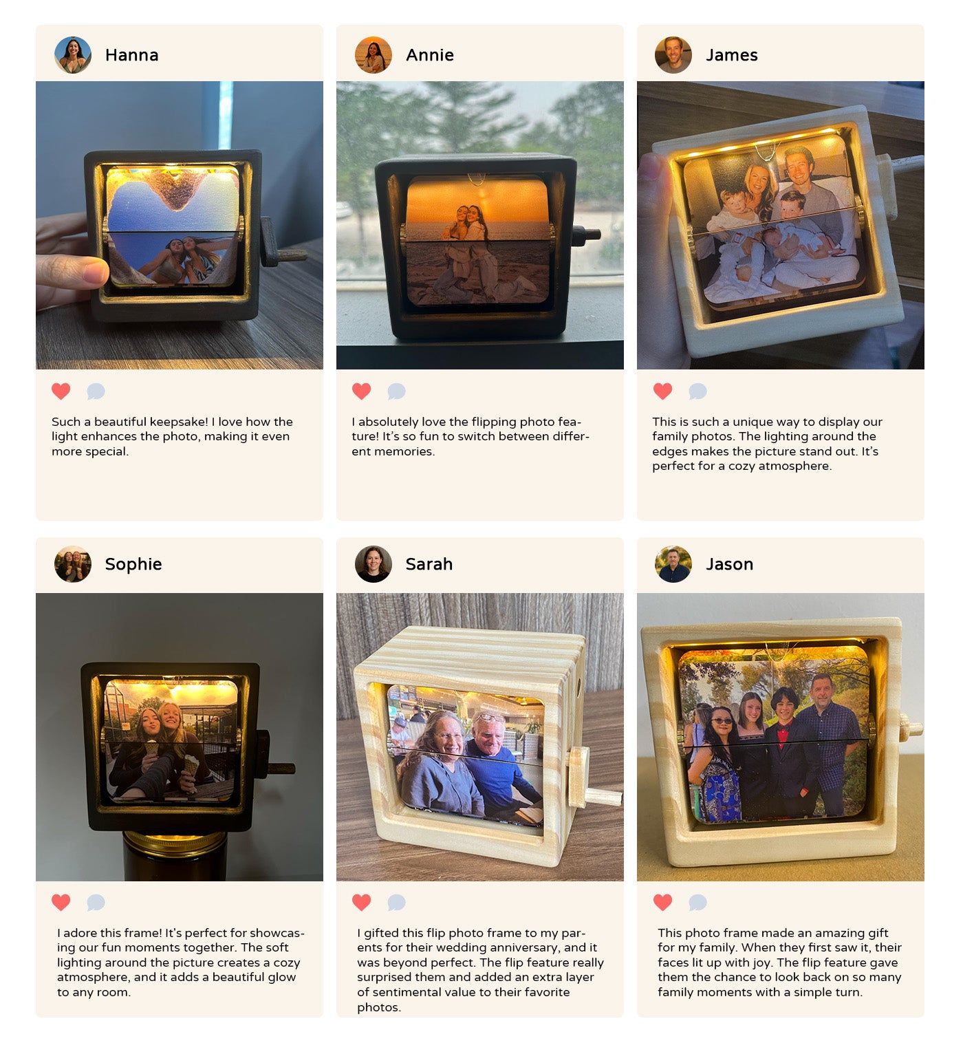 - Interactive Memory Display – Bring your photos to life with a hand crank that creates a captivating flipbook animation experience.