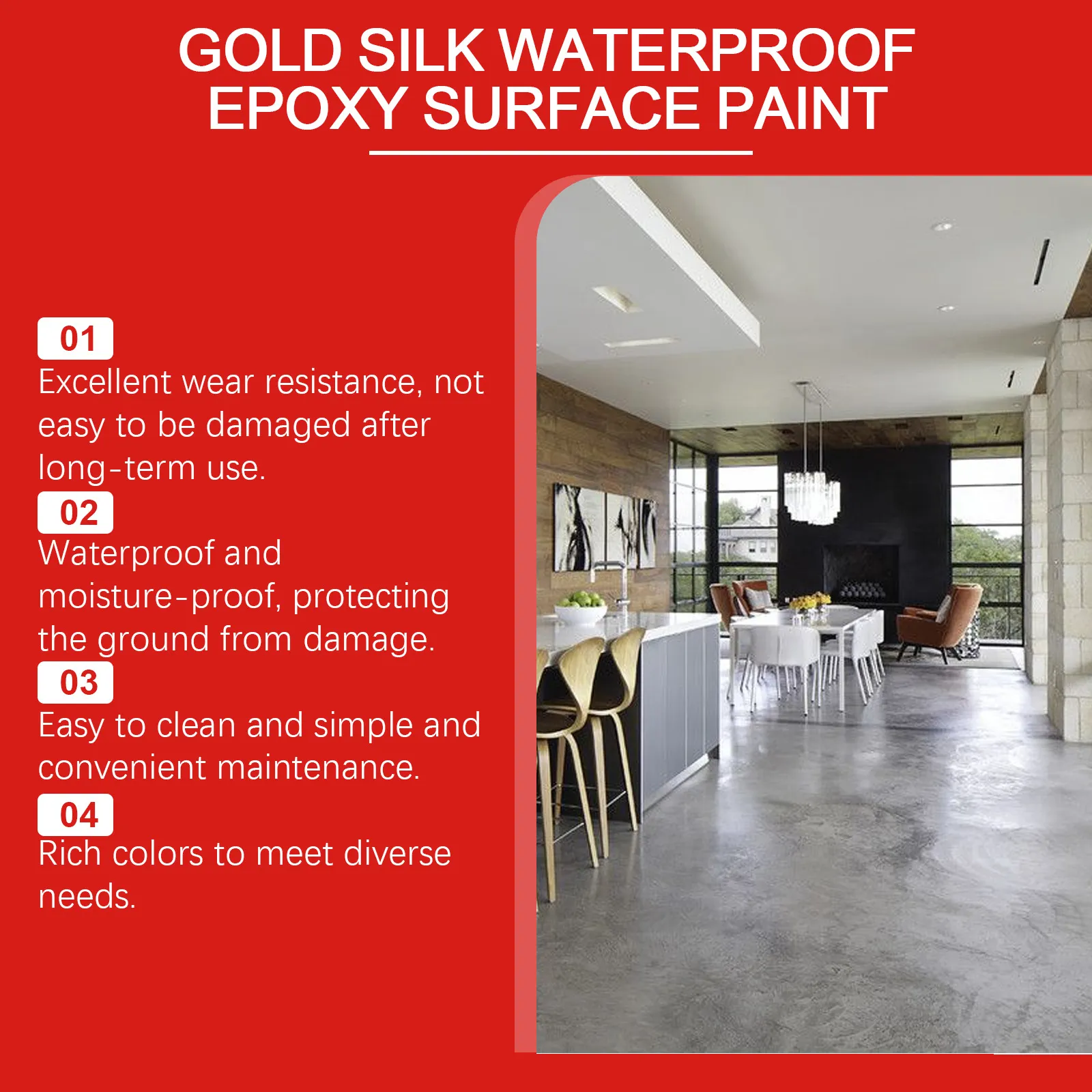 - Enhanced Aesthetic Appeal: Revives worn-out floors with a fresh new look, whether you're going for a vibrant color or a more neutral, sleek finish.
