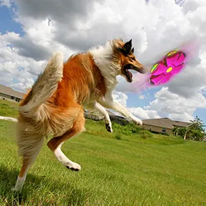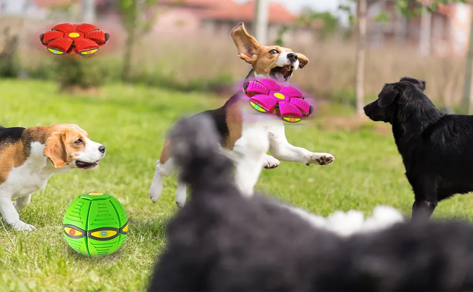 Interactive Flying Play: Designed to encourage chasing, running, and retrieving, helping dogs stay active and engaged during play sessions.