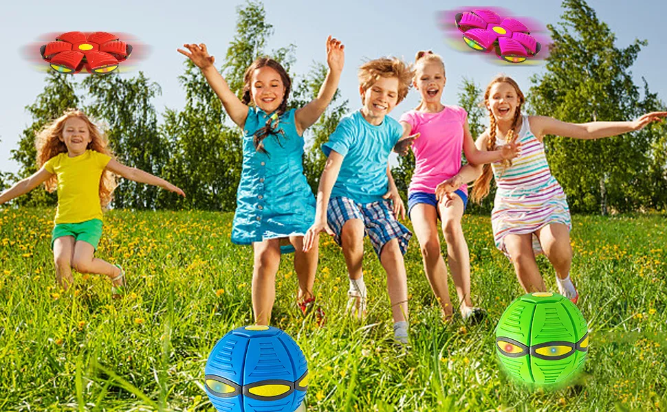 【Multiple Ways to Play】The two forms can be switched freely; press the yellow circle with your palm and paste it up and down directly, it becomes a cool flying saucer toy. After pressing, it is no longer a simple ball, it is a flying saucer ball, it can also be a football, or throw a sandbag.