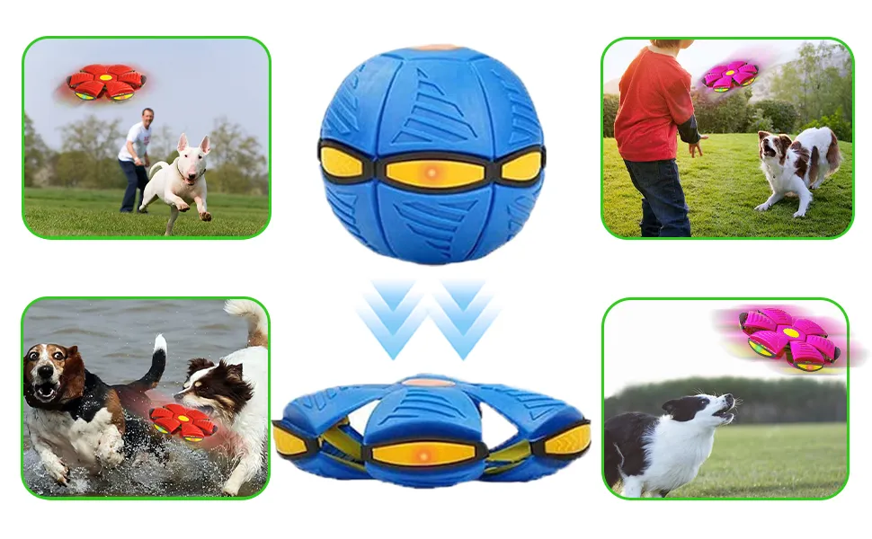 【Pet Interactive Toy】Dogs and adults alike will love this fun and fantastic fly ball stress relief toy. A few seconds later, the shape of the disc flew out and turned into a ball in the air, and the flying saucer automatically turned back into a ball, allowing the companion to catch the magic ball toy.