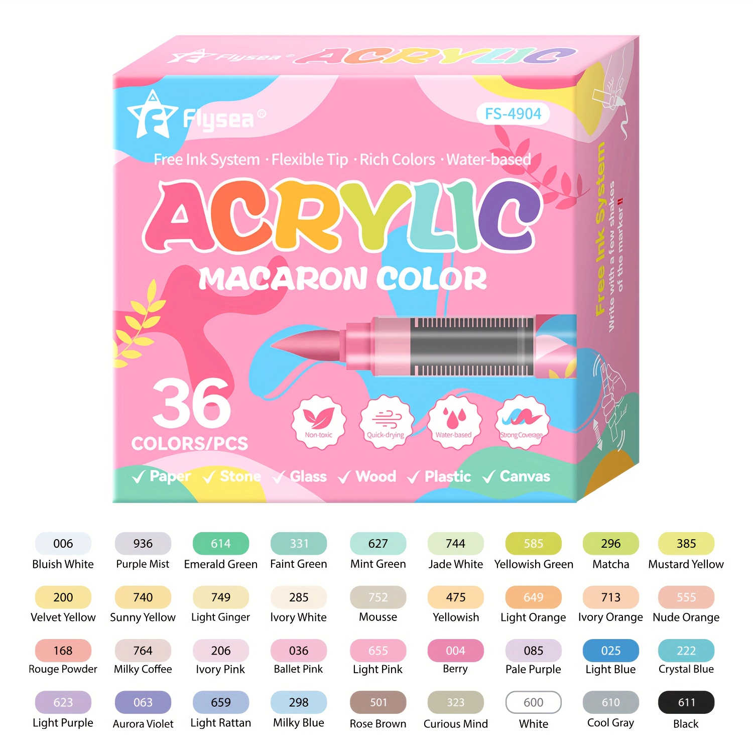 The FLYSEA 24/36 Colors Acrylic Marker Set is crafted for New Zealand creators who want a flexible, vibrant, and professional-grade brush pen collection. With highly pigmented water-based acrylic ink, these brush markers deliver bold color, smooth flow, and excellent performance on paper surfaces, making them ideal for designers, illustrators, hobby artists, students, and creators working across multiple scenes and project types.