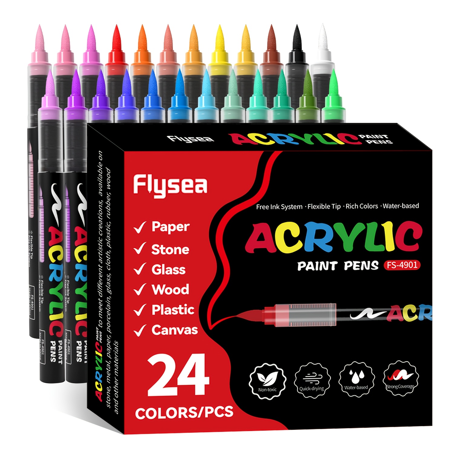 Description – FLYSEA Vibrant Acrylic Paint Marker Set (Non-Toxic, Multi-Surface Use)