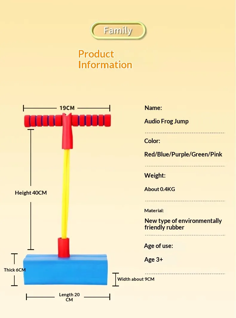 The Foam Pogo Jumper is a child-friendly jumping toy designed to provide hours of active amusement while supporting balance and gross motor development. Unlike traditional pogo sticks that use rigid metal frames and springs, this version features soft foam construction and a stable, low-impact design that makes it safer and more approachable for younger users.