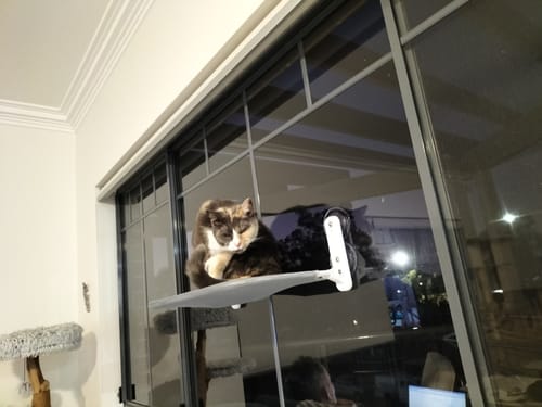 Ollie loves looking out the window to see what’s going on. He has a cat climbing house next to the hammock and he spends time on both. I