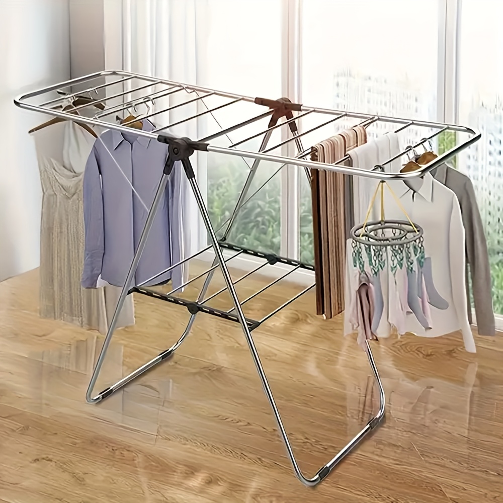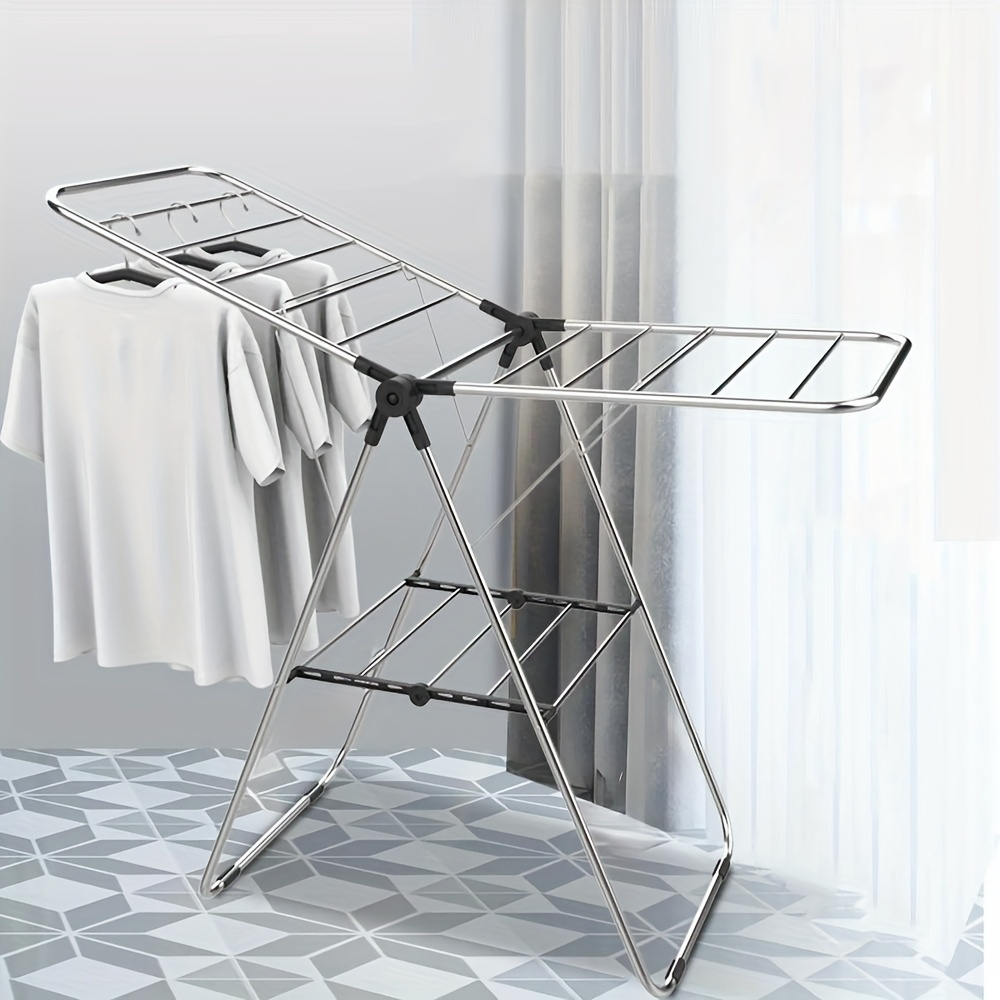 Foldable Stainless Steel Clothes Drying Rack with Adjustable Wings – Space-Saving Laundry Hanger, Drying Racks