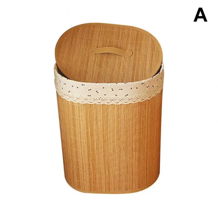 Folding Bamboo Storage Basket Large Storage Laundry Bin Box with Lid and Removable Lace: Stylish and Practical Storage Solution