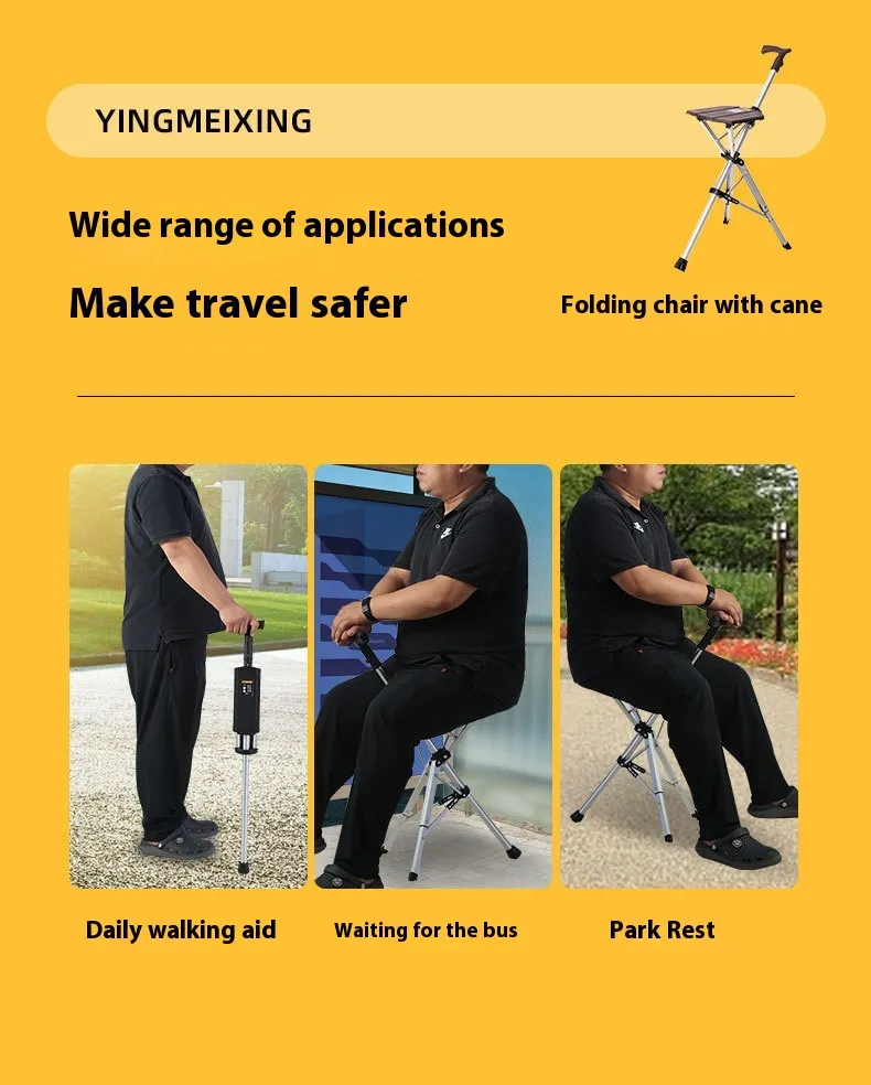 The Folding Cane Seat Combo distinguishes itself through its combination of mobility support and rest‑ready convenience. Unlike traditional canes that only assist with walking, this model integrates a fold‑out seat so you can sit anytime without searching for nearby benches or chairs. This dual‑purpose tool is especially helpful for seniors, travellers, festival‑goers, hikers, and anyone who spends long periods on their feet.