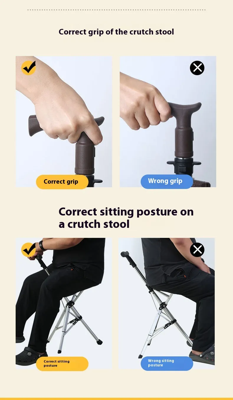 This combo tool is crafted with user comfort and portability in mind. Its lightweight frame folds down compactly for easy storage in cars, backpacks, or entryway racks. The seat material is durable, water‑resistant, and easy to wipe clean, making maintenance as straightforward as its functionality. With its dual‑purpose design, the Folding Cane Seat Combo ensures you stay supported and comfortable throughout your day.