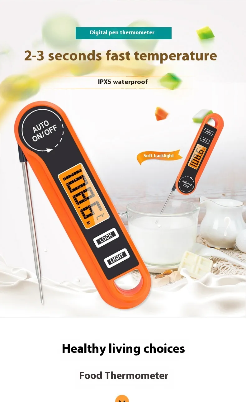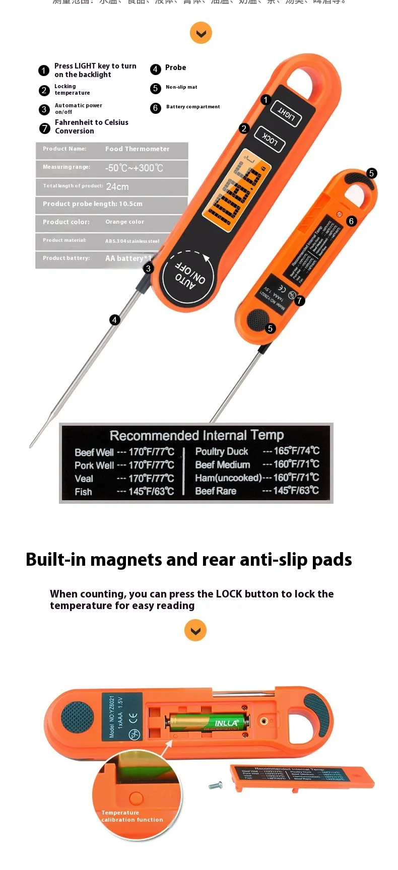 Folding Electron Spectrum Barbecue Thermometer Digital Display Written Test Large Screen Waterproof