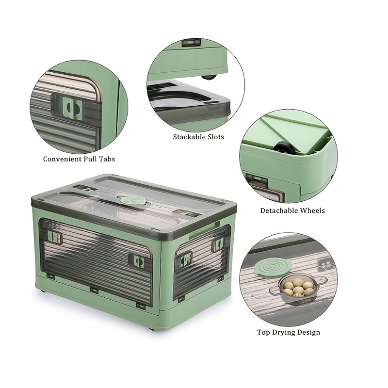 Description – Folding Storage Bins with Wheels and Lids, Stackable Design