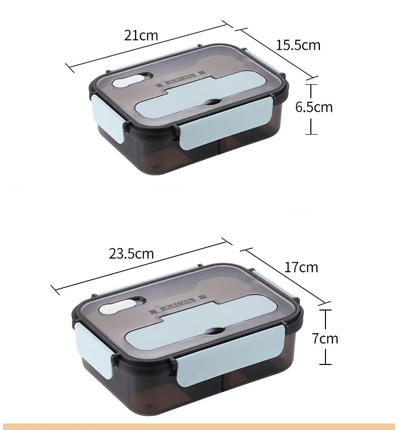 Style A: blue 1100ml (two compartments) + plastic fork and spoon,