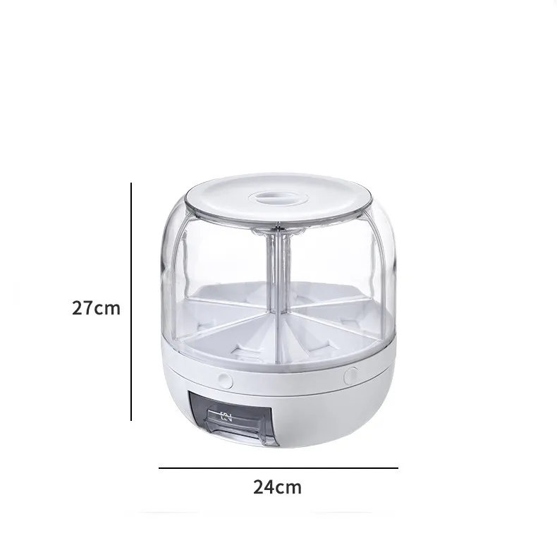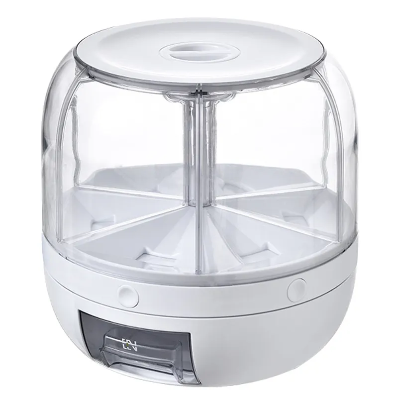 The container has 6 grids and can store whole grains, such as rice, green beans, red beans, barley, millet,