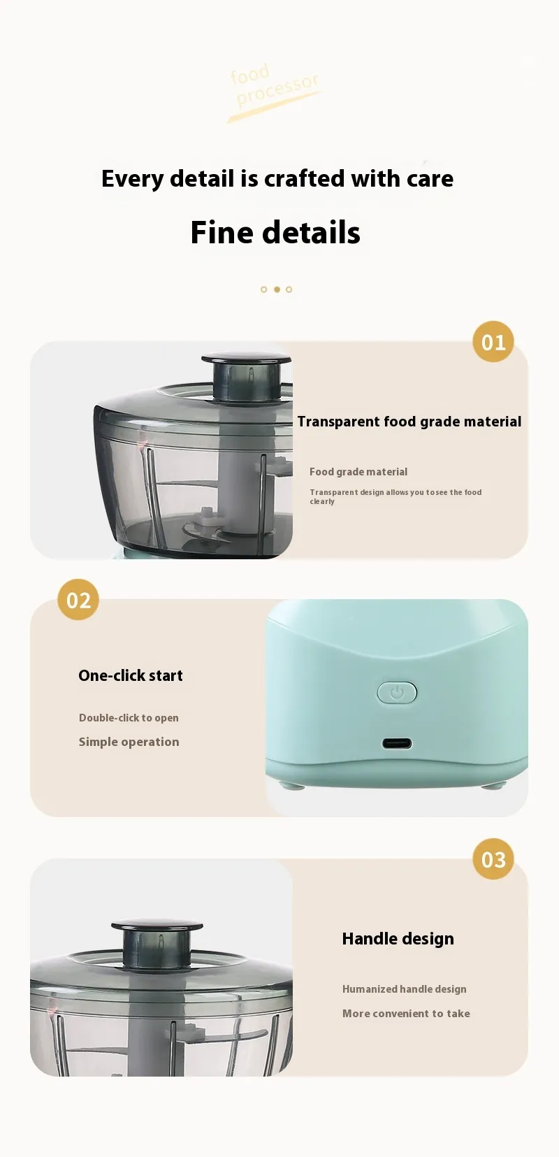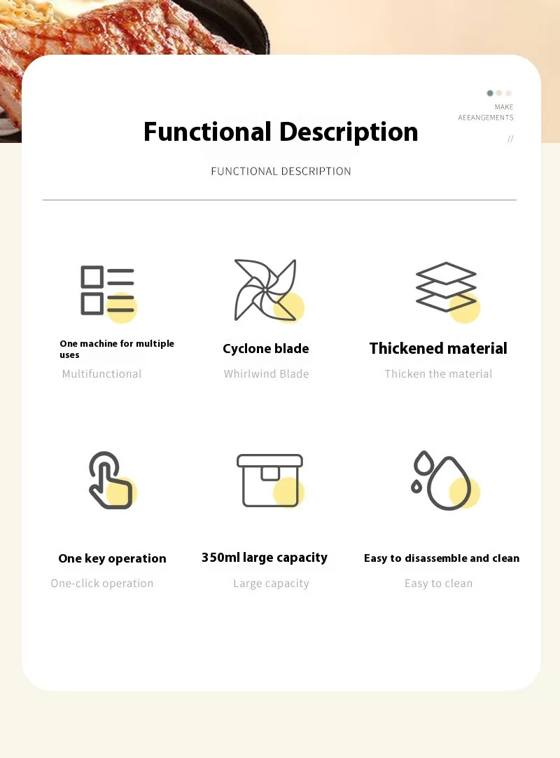 Function: baby food supplement, portable charging, wireless operation, egg mixture pass